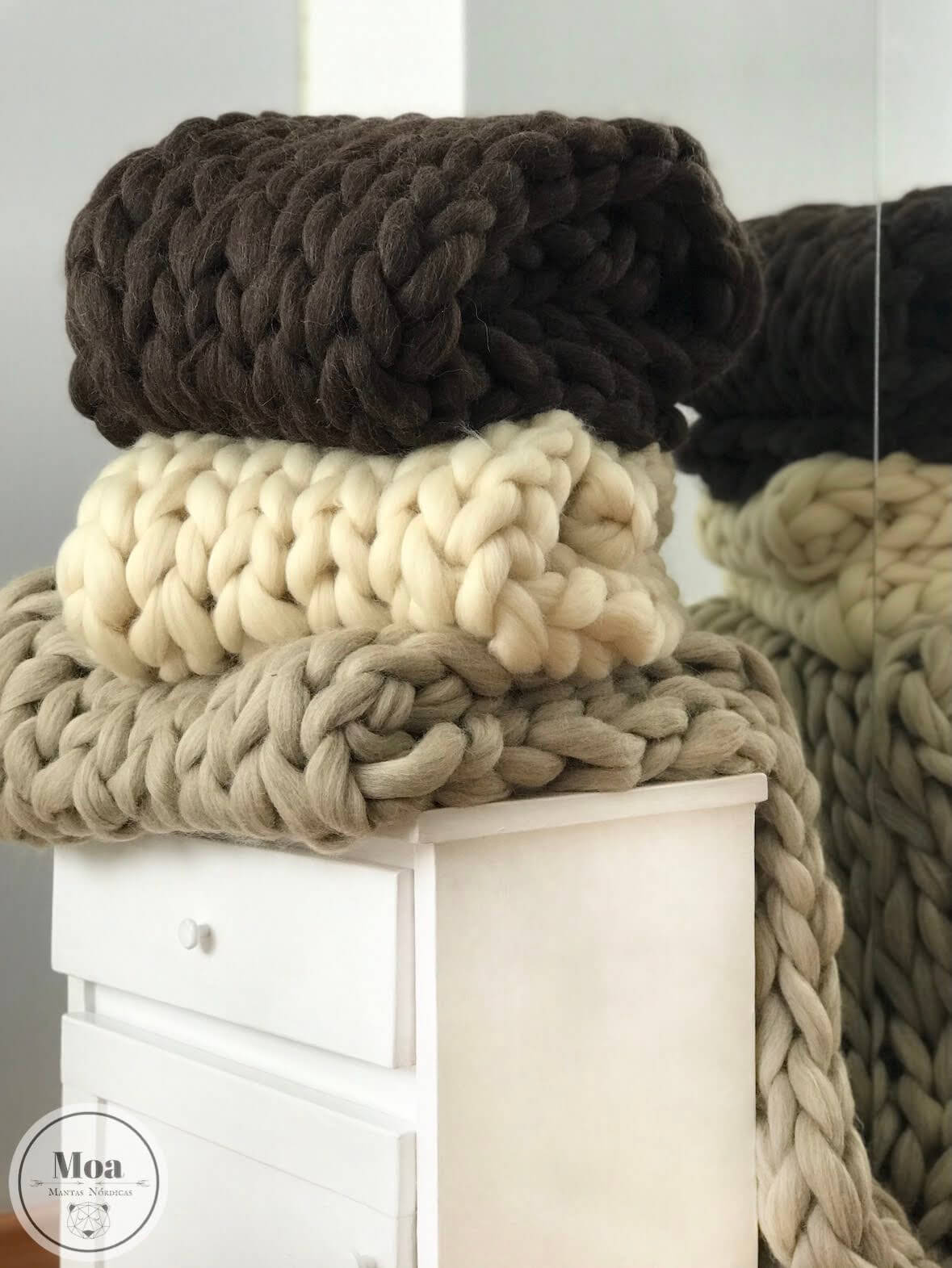 Ideal para pie de cama de 1 plaza. Las medidas son aproximadas, pueden estirarse por el tipo de tejido. Son muy suaves y calentitas. Elaboradas artesanalmente. Podes decorar tu living y dar un estilo Nórdico donde quieras. Elegila en cualquiera de nuestros colores.