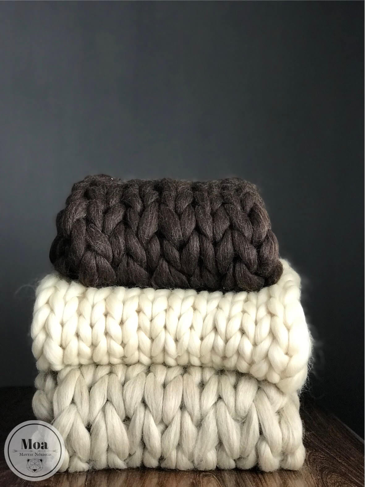 Ideal para pie de cama de 2 plazas y 1/2. Las medidas son aproximadas, pueden estirarse por el tipo de tejido. Son muy suaves y calentitas. Elaboradas artesanalmente. Podes decorar tu living y dar un estilo Nórdico donde quieras. Elegila en cualquiera de nuestros colores.